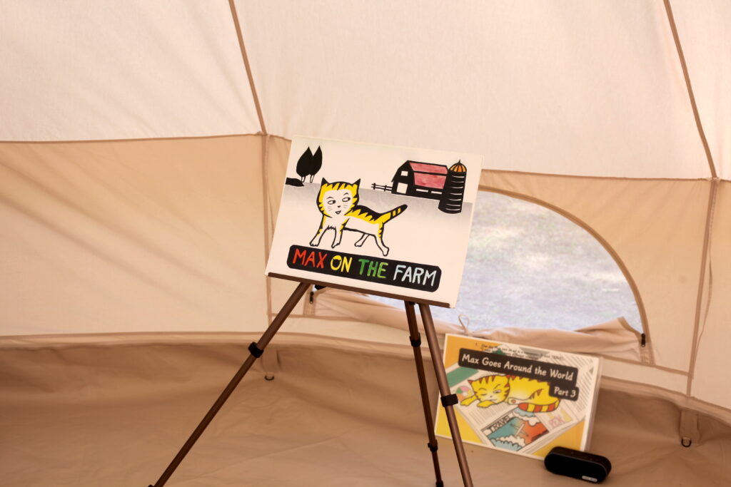 Prefix Coffee Standさんの可愛いテントの中で、読み聞かせ。