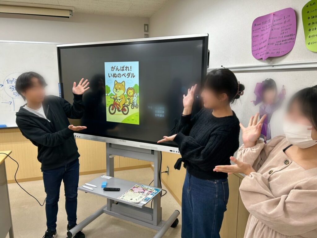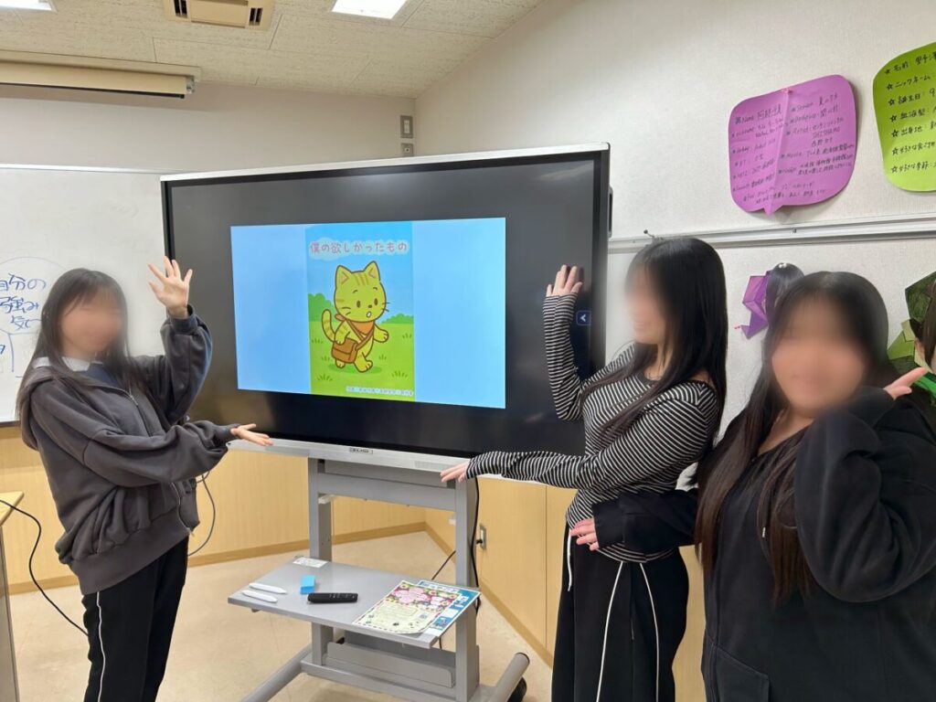 2日目は学校に戻り、紙芝居形式のストーリー制作に取り組みました。学生たちはスマホでChatGPTやCanvaをサクサク活用し、あっという間に作品を完成させ発表。どの作品も制作者の温かさが伝わるような、ジーンと来るお話。