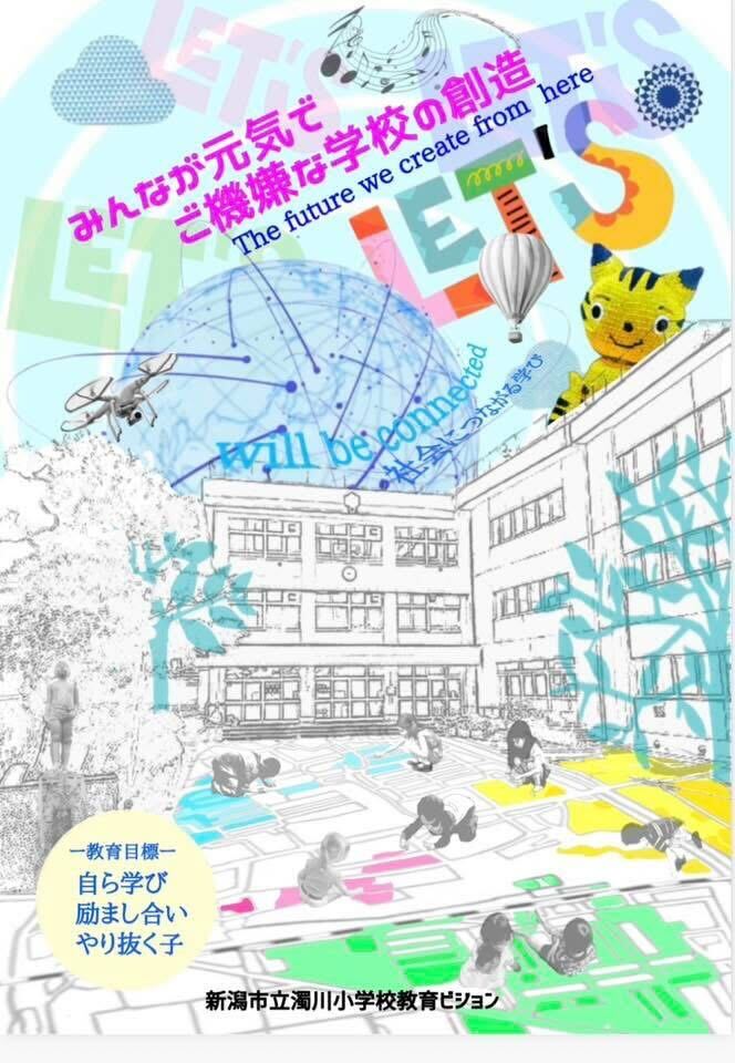 先日、濁川小学校の校長先生から一枚の写真が届きました。なんと、教育ビジョンの表紙には、私の紙芝居の主人公、Maxが登場しているのです!
