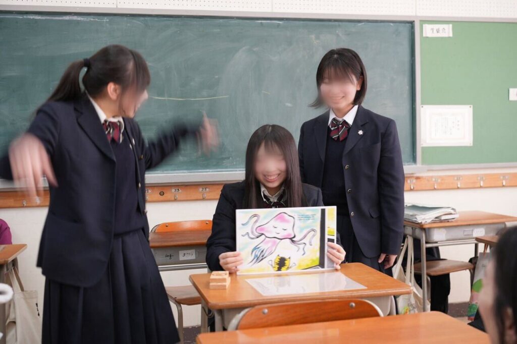今回は、高校生の皆さんに英語紙しばいを上演し、さらに実際に読み手として体験してもらうワークショップを行いました。