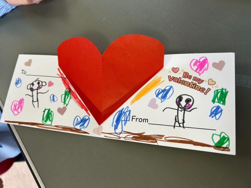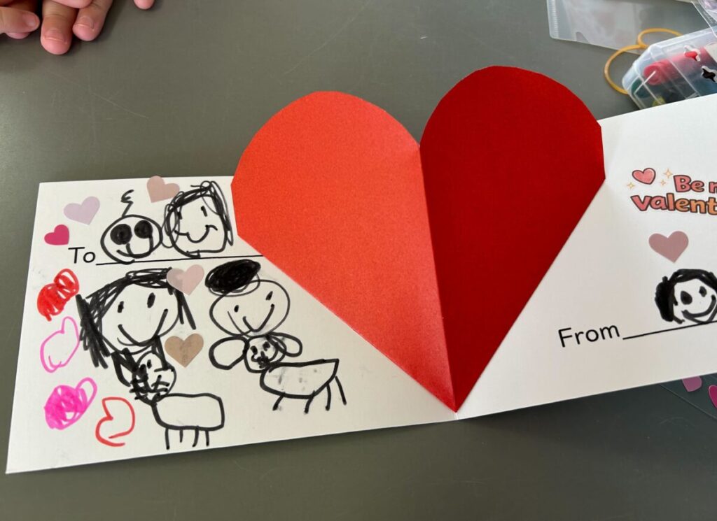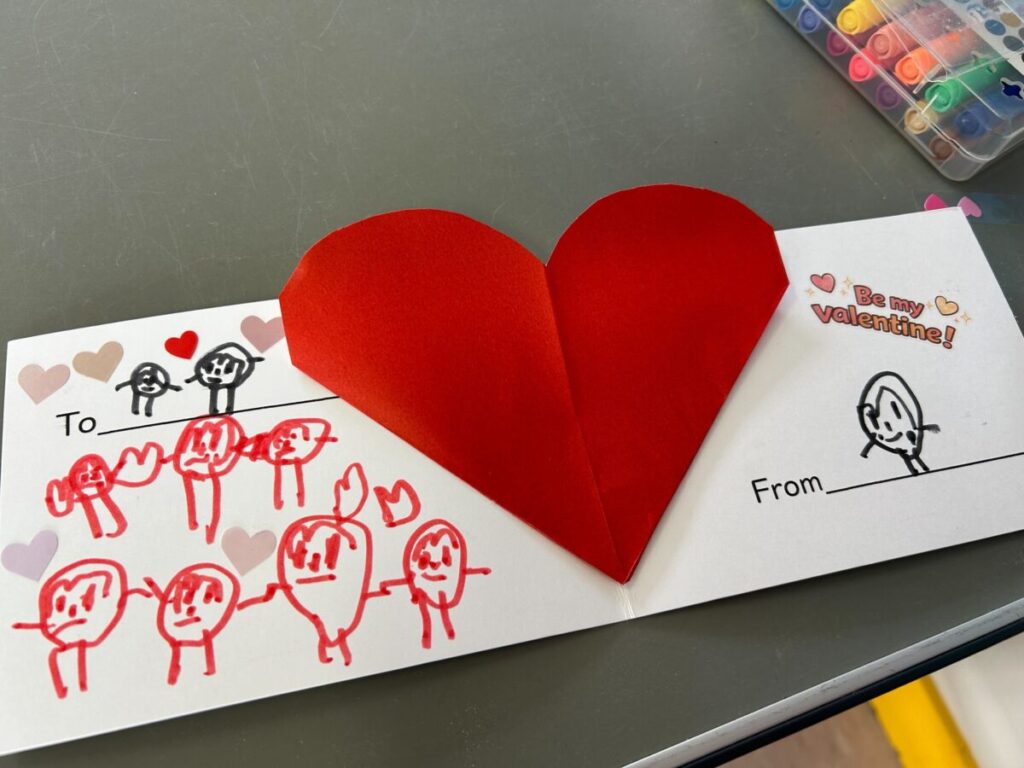 幼稚園年中組のレッスンで、バレンタインカードを作りました。