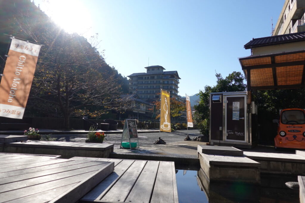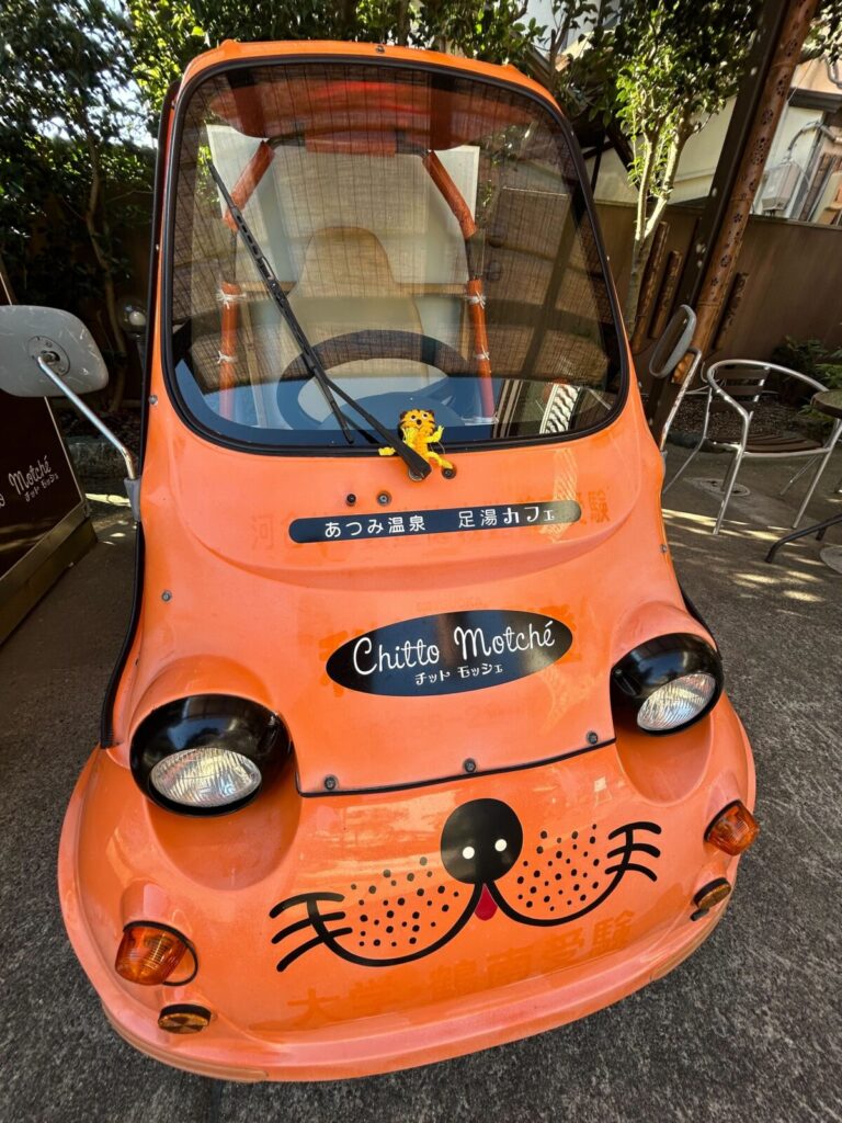 そして移動の合間に立ち寄ったのが、こちらの写真にあるあつみ温泉の足湯カフェChitto Motcheさんです。のんびりとしたひととき、なんと野良猫ちゃんまで歓迎してくれて、ほっこりする瞬間でした。